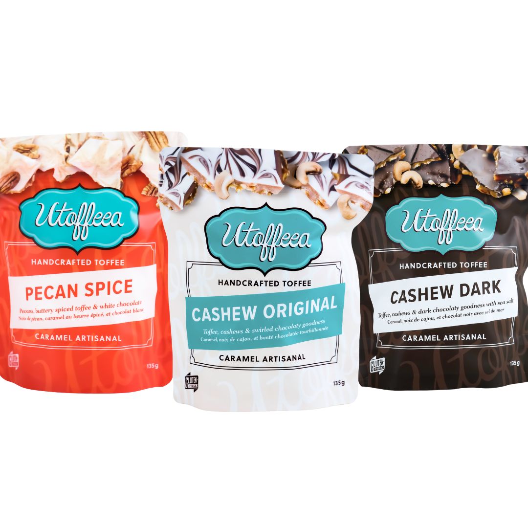 Can’t choose just one? The Utoffeea Favourites Bundle brings together three of our most popular toffees: Cashew Original, Cashew Dark, and Pecan Spice Utoffeea.
